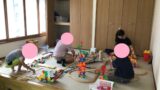 絵の具が大好きなお友達は楽しそうに松ぼっくりに色を塗っていました(^^♪