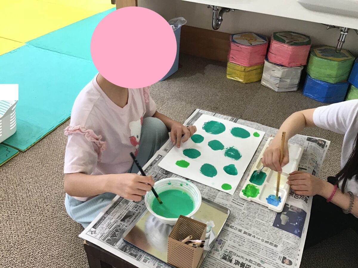 この日は絵の具遊びを楽しんでいるお友達がいました。