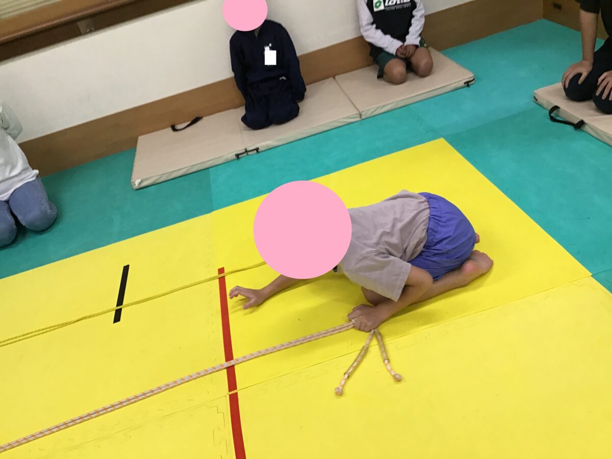 ビジョントレーニング、もう1つのコーナーはひも引きです!