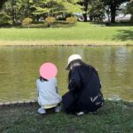 スタッフと一緒に座り、鯉の観察もしていましたよ🐠
