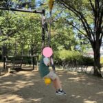 遊具では、滑り台を滑りますが、雨が上がった後だったので少し濡れていました💧