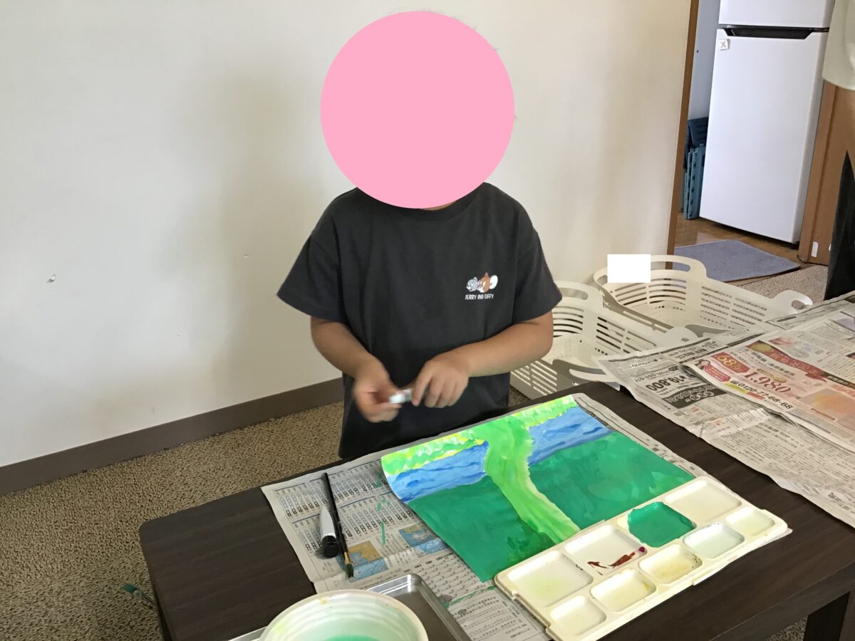 絵の具を選んだり、筆を用意するところも楽しんでいますね☺