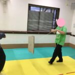 完成したら、スタッフと一緒にこまを回してみます!