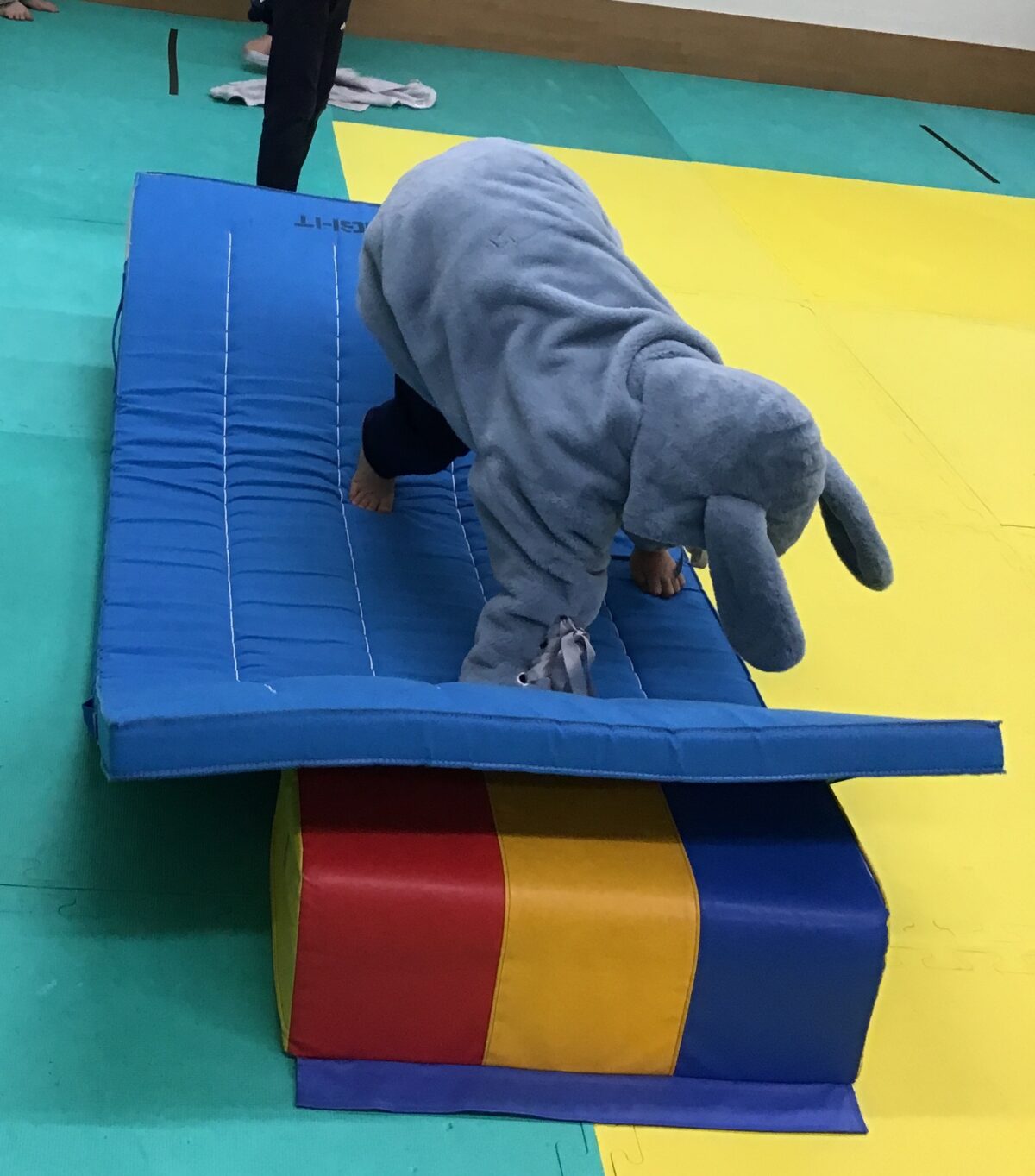 跳び箱が斜めにしたので傾斜が変わり、