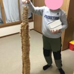 全て積むとお友達の背丈ほどのタワーが完成しました!