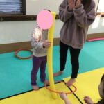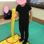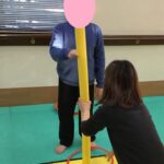 今回は、ストレッチポールを掴む運動あそびをしました。