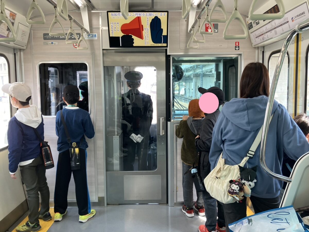 帰りも一番先頭の車両に乗り、車掌さんの運転席を間近に見れて嬉しそうにしていました。